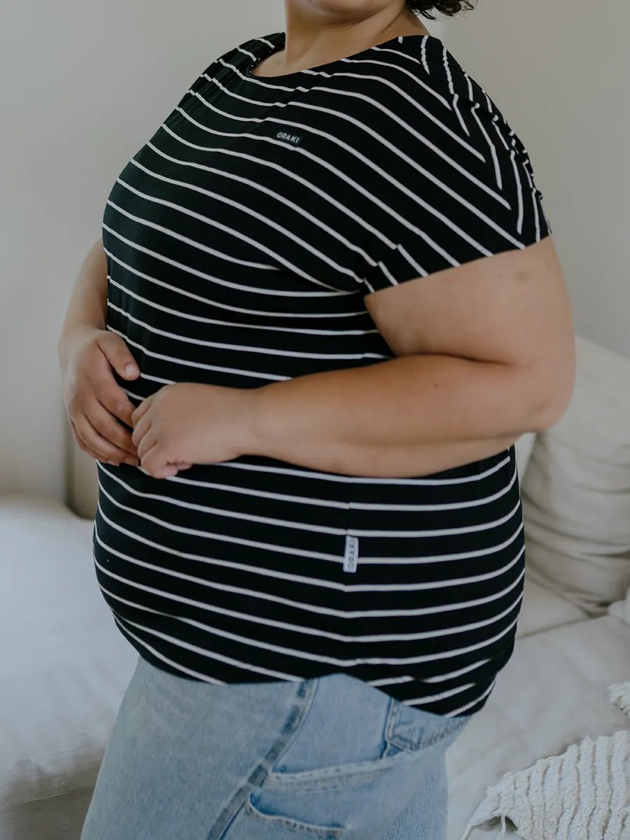 T-shirt col rond à manches chauve-souris ecovero™ - Noir à rayures