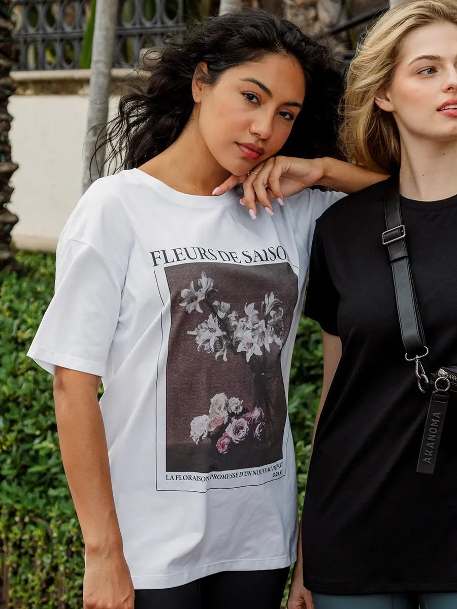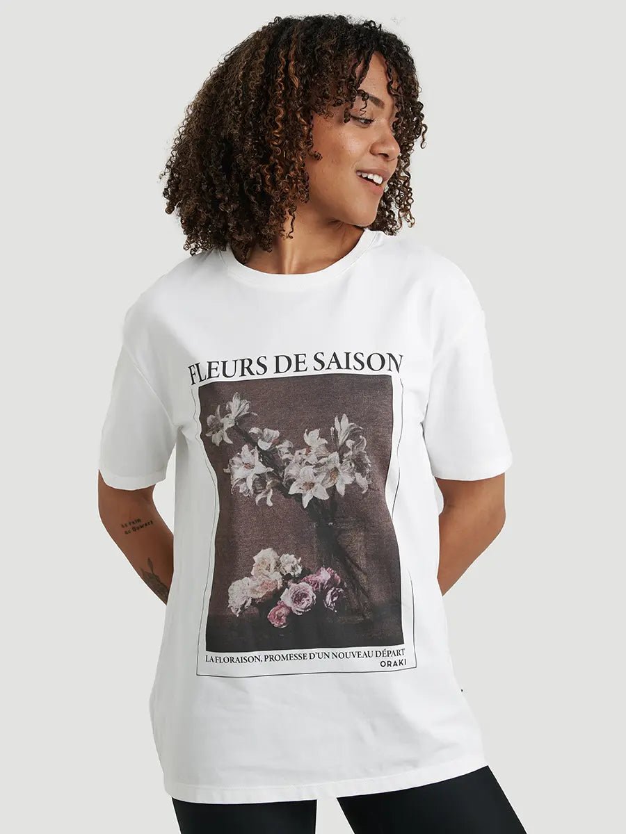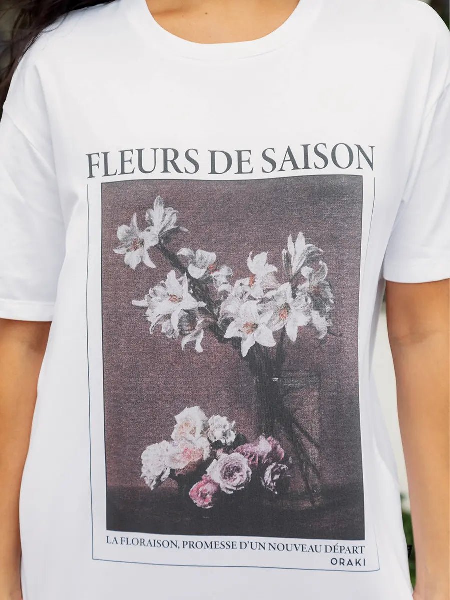Fluid Jersey Printed Loose T-Shirt - Seasonal Flowers
