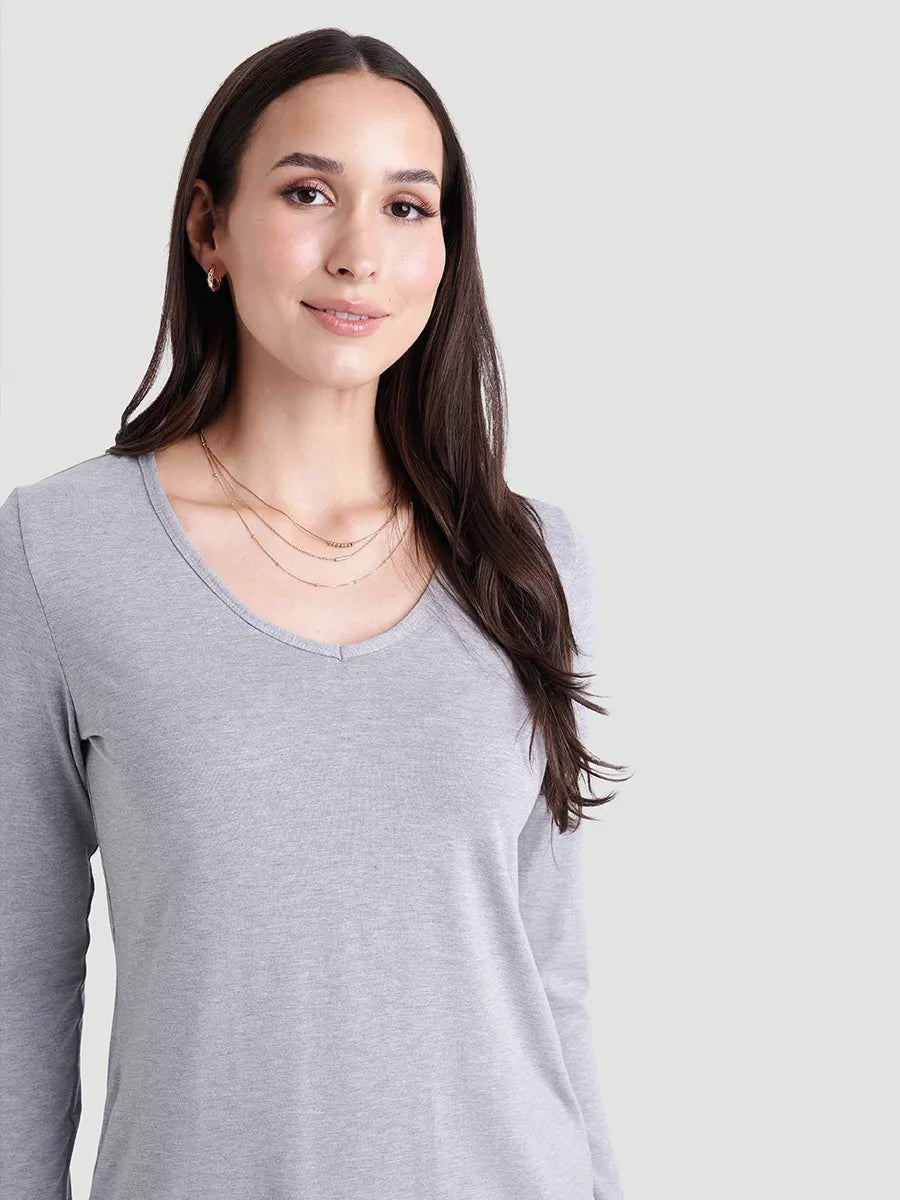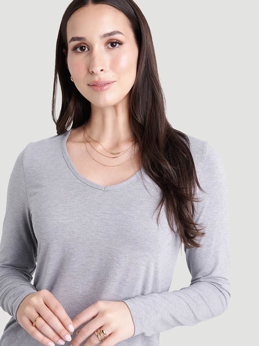 Ecovero V-Neck Long-Sleeved Shirt - Heather Grey