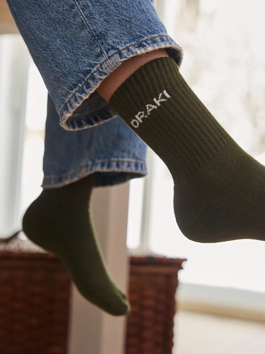 These soft and comfortable ORAKI mid-calf socks are designed for everyday wear. Their breathable, stretchy fabric keeps your feet dry while providing a perfect fit. They are made from combed cotton.