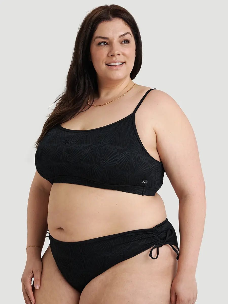 This top stands out for its seashell jacquard pattern, both sophisticated and striking, a twist that elevates the classic black. Its skinny, adjustable straps, combined with its comfy feminine cut, make it just as pleasing on the body as it is to the eye. Because you can never have too much black... especially when it's THIS stunning.