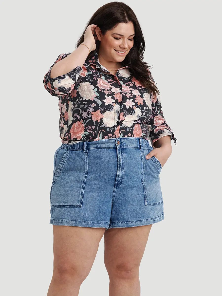 Stretch Twill Fitted Shirt - Black Peonies