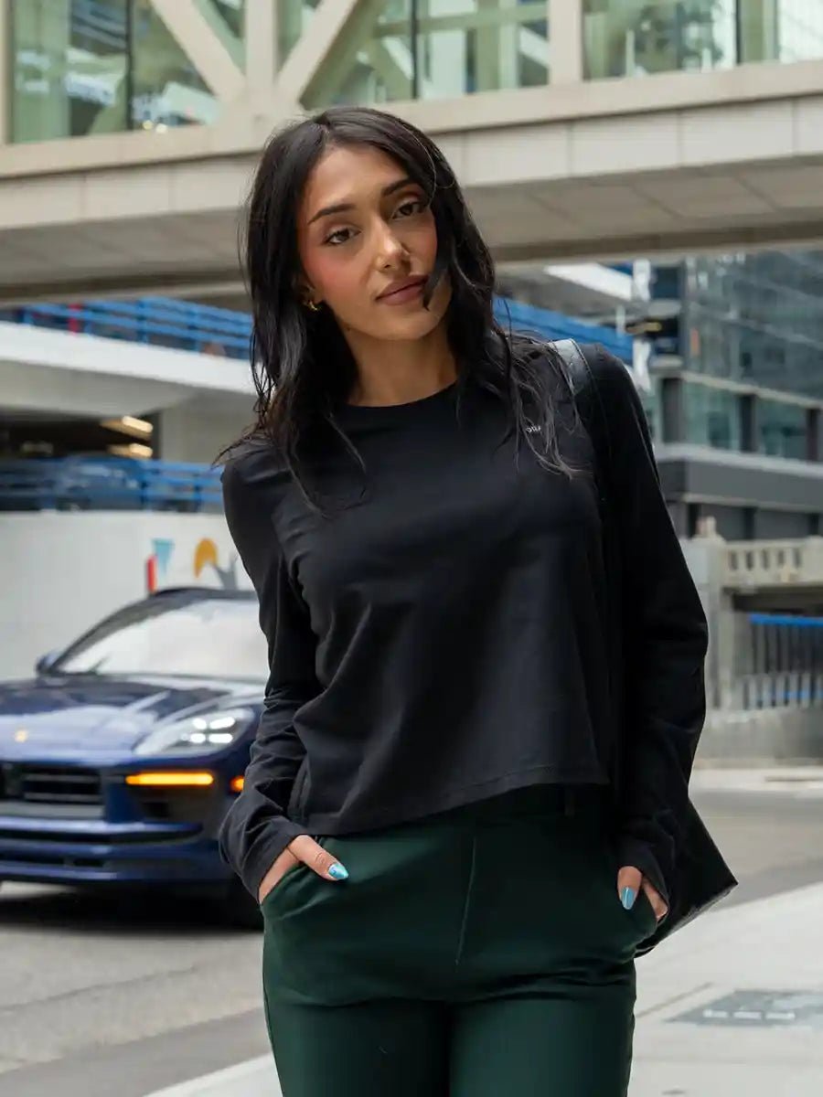 All our clothes are made in Canada, from recycled materials or natural plant fibers, by women for women.