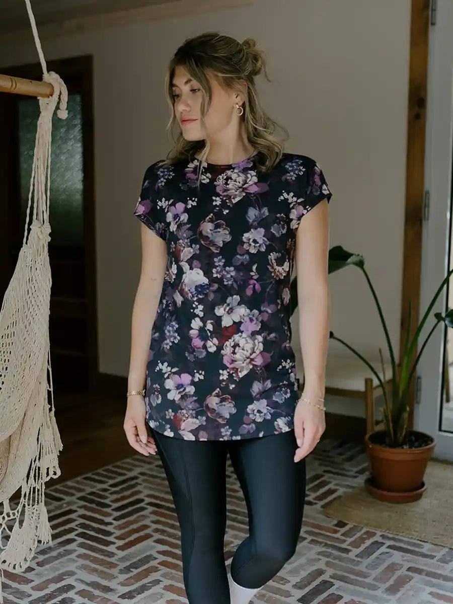 SoftTouch Dolman Sleeve Long Crewneck T-Shirt - Floral Escape
