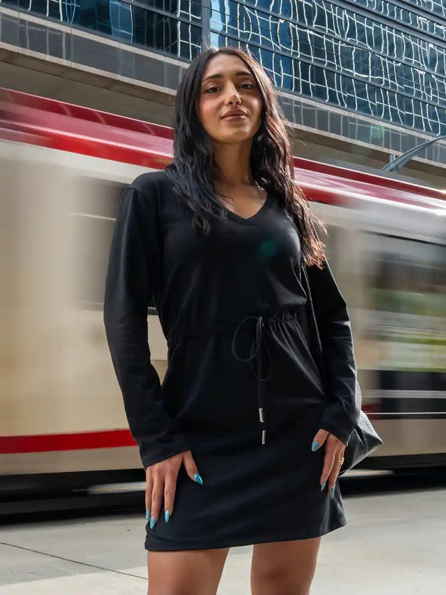 All our clothes are made in Canada, from recycled materials or natural plant fibers, by women for women.