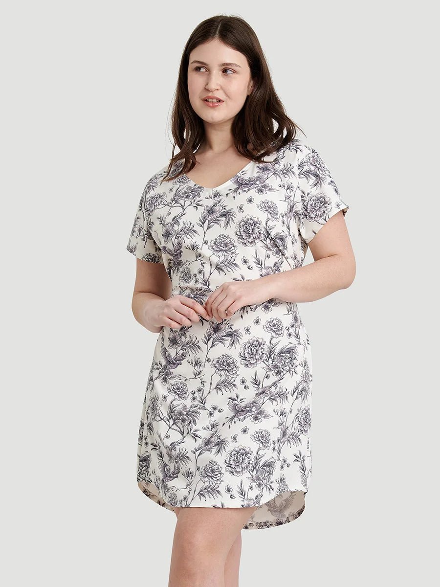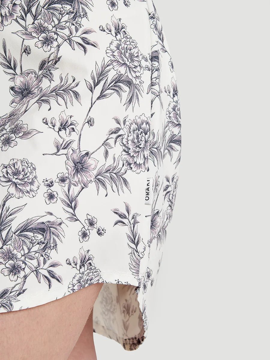 This dress is the epitome of spring with its bright color and lovely print. Its belt, which can be tied either in the front or back, accentuates the waist. Its ideal length makes it perfect for everyday wear.