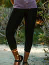 Meet our Ecorelax material, a soft yet sculpting geometric jacquard fabric in 20” leggings. Available in black.