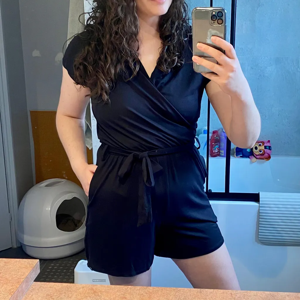 Ecovero™ Wrap-Front Romper with Belt - Black