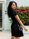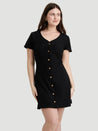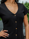 V-Neck Buttoned Dress with Lace-Up Back - Black