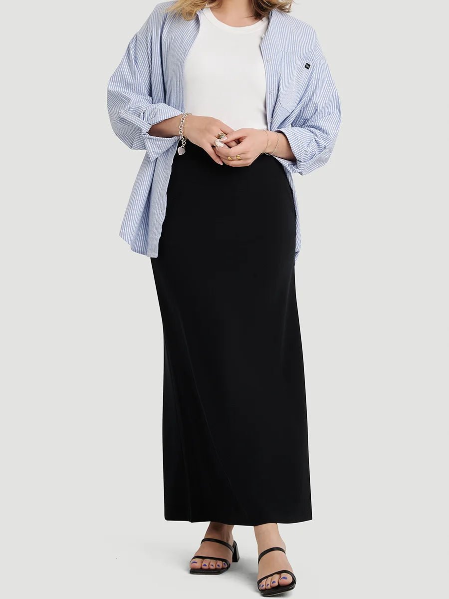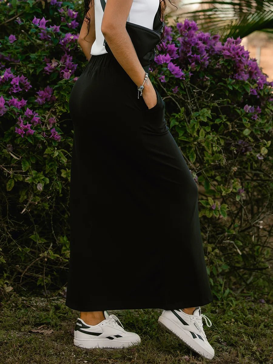 Jupe Longue à Poches avec Fente Latérale Ponte Finesse - Noir