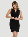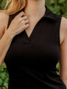 Robe Polo Sans Manches à Encolure Fendue - Noir
